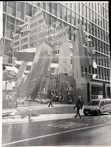 This work is a collection of four months of quick snapshots — people I found compelling, moments when the light felt especially beautiful. Through these images, I wanted to express my visual understanding of living in New York: its geometric forms, its cadences, and the material sensation of strolling through the city. Because the camera captures experience within a one-dimensional frame, I chose to cut, layer, and combine images to create a more three-dimensional understanding of my perception.