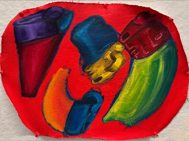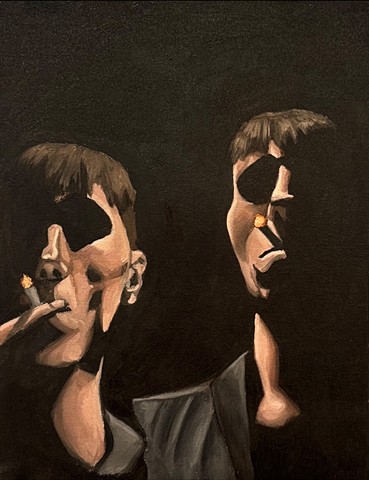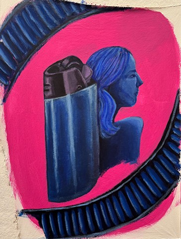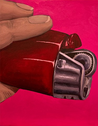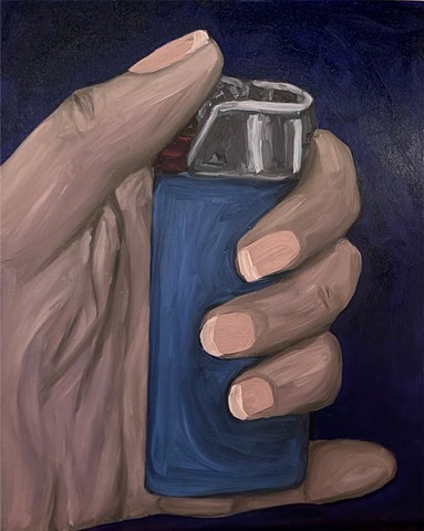I don’t smoke. Through repetition of lighters and smoking, pieces come together in different ways, shifting each time, and becoming something new. In oil paintings, specificity yields more direct interpretations that represent reality with a more grounded, seemingly accurate feel. Whereas looser, more expressionistic interpretations are depicted in vivid colors and bolder lines with acrylic paint, oil pastels, and various pens.