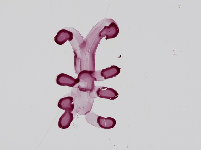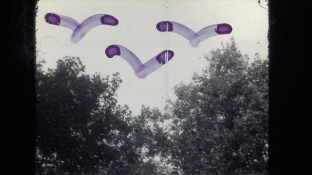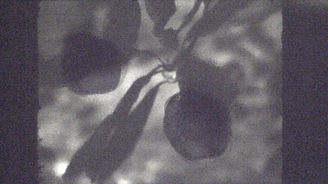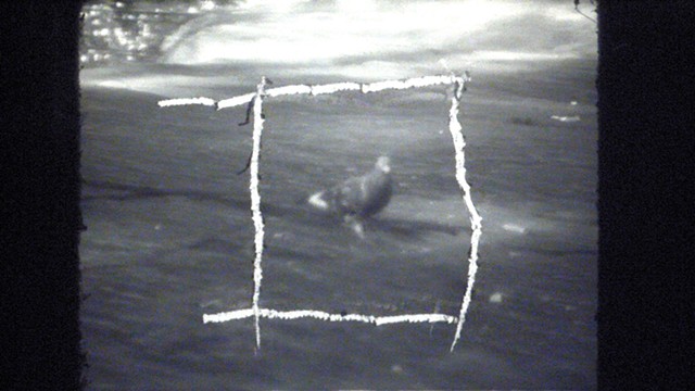 shared senior seminar studio with rudimentary animation made by drawing and scratching on the film itself. The combination of abstract and simplistic figural imagery with realistic footage is meant to call into question the dichotomy between reality and imagination, and whether any